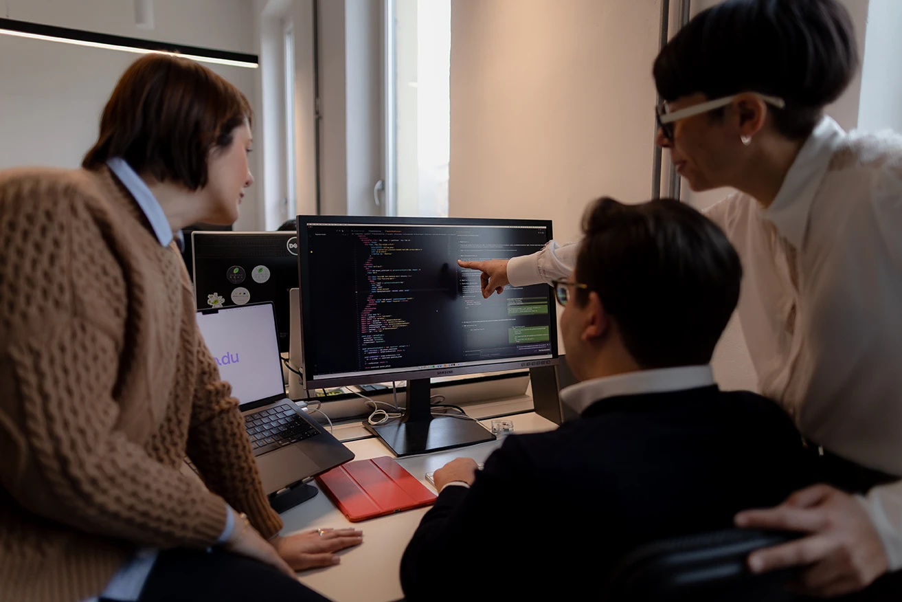 Siamo partiti dal codice, poi abbiamo capito che servivano nuovi mondi e più contaminazione. Da allora, non ci siamo più fermati. Oggi insieme a Valentina siamo tre soci e dodici menti, ognuna parte del viaggio.